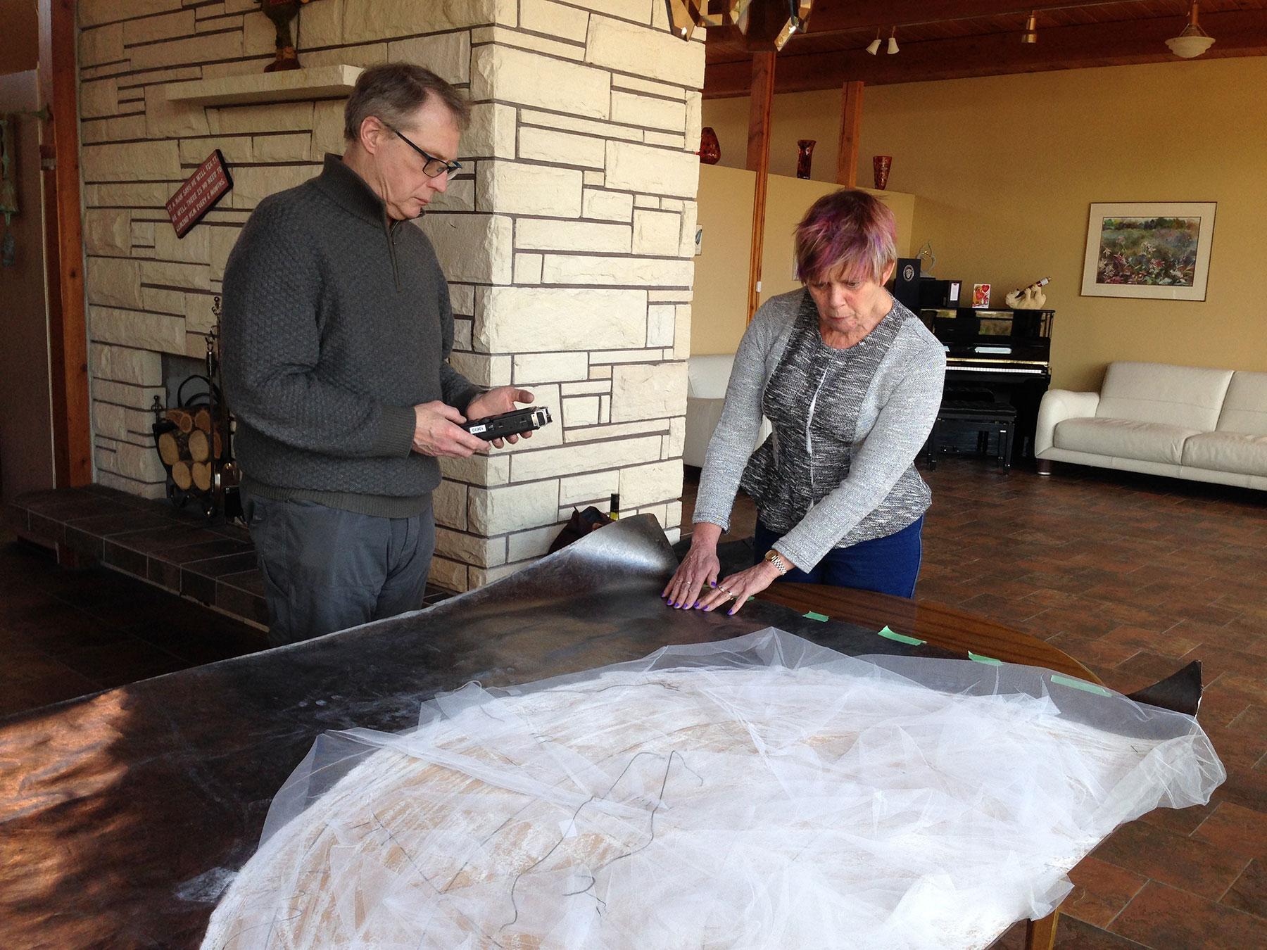 I then worked with Marilyn Rushton, an accomplished musician, educator and pillar of Vancouver’s blind community who has never had sight. She “sees” with her other senses. Marilyn explored the drawing with her hands, actually changing it in the process as chalk pastel and graphite mingled, creating an unexpected chain reaction. We recorded her fascinating oral descriptions, which were like those of an explorer discovering an unknown landscape. The recording was then played for a sighted audience, who had to “reach” for the drawing in their own imaginations based on Marilyn’s descriptions.
